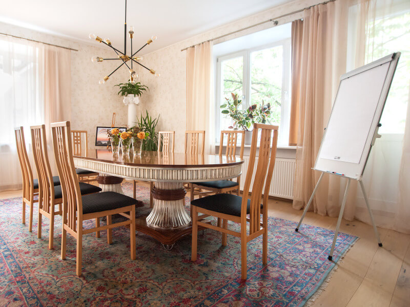 Meie õpistuudio kogupindala on 150 m2, mahutades 4 erineva sisustusega ruumi ja köögi (toitlustus) ala.