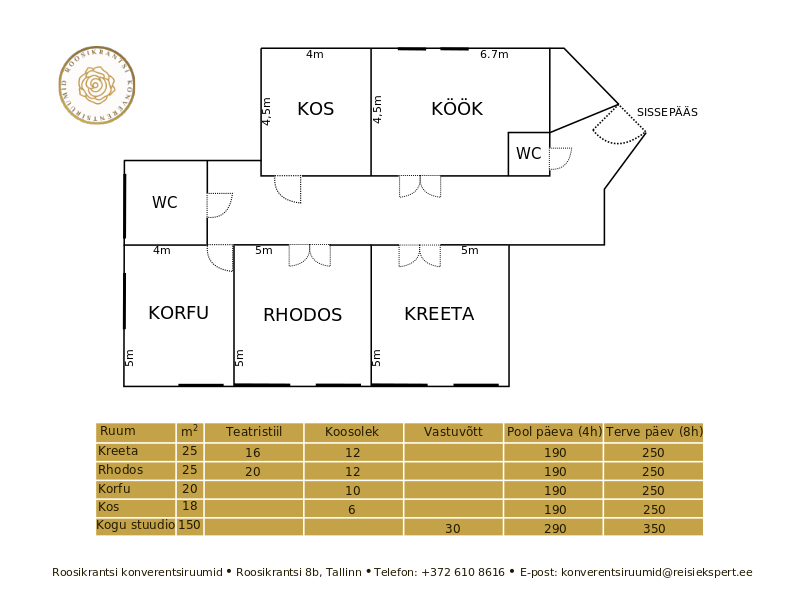 - ruume rendime tööpäeviti ajavahemikul 09:00-17:00